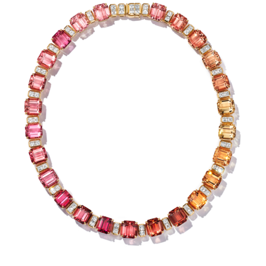 Necklace in 18k yellow gold with multicolored tourmalines and diamonds.