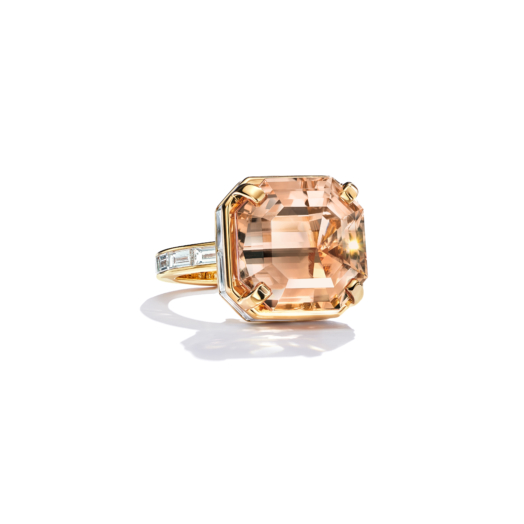Ring in 18k yellow gold with an orange tourmaline, over 14 carats and diamonds.