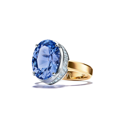 Ring in 18k yellow gold and platinum with a blue spinel, over 6 carats and diamonds.