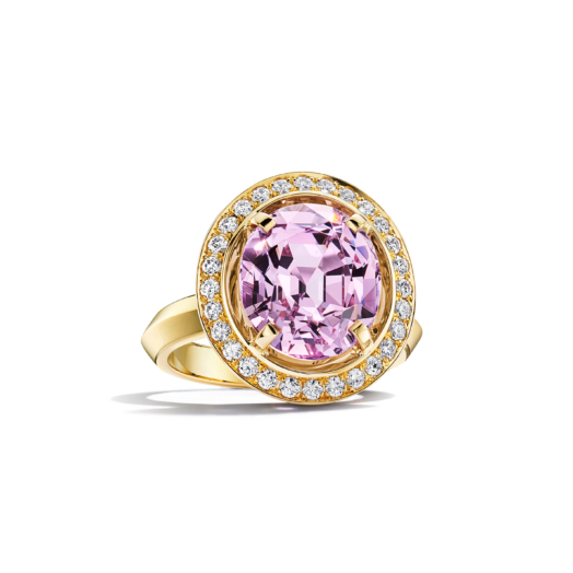 Ring in 18k yellow gold with a purple spinel, over 6 carats and diamonds.