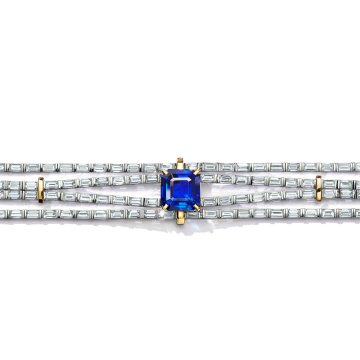 Bracelet in platinum and 18k yellow gold with an esteemed Sri Lankan sapphire, over 13 carats and diamonds.