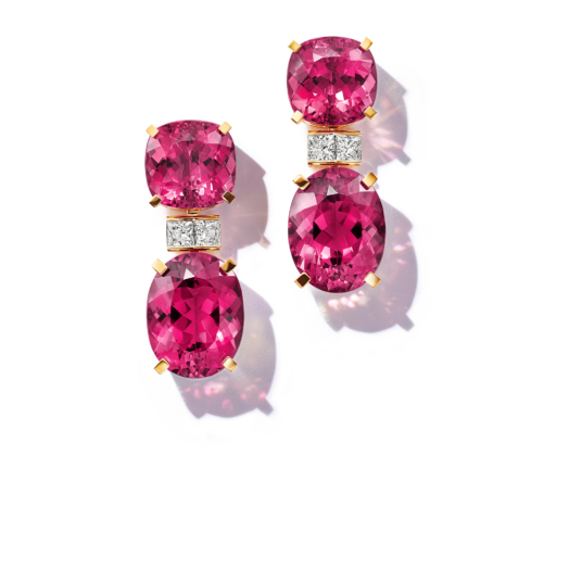 Earrings in 18k yellow gold with rubellites and diamonds.