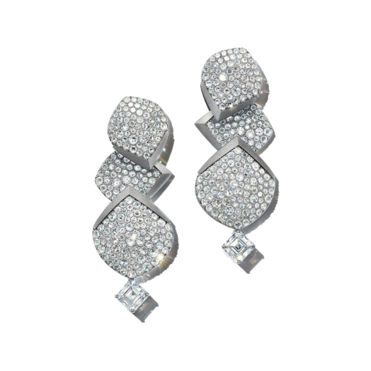 Earrings in platinum and titanium with diamonds. Convertible piece.