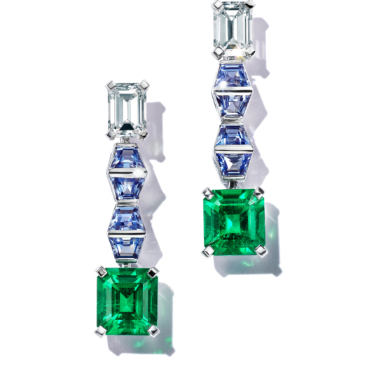Earrings in platinum with unenhanced esteemed Colombian emeralds, sapphires and diamonds.
