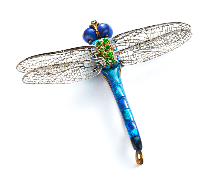 Brooch. Julia Munson under the direction of Louis Comfort Tiffany for Tiffany & Co. 1904–1914 Gold, platinum, black opals, demantoid garnets Mar 14, 2024