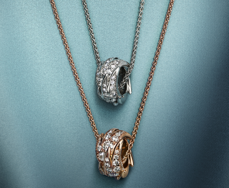 Bird on a Rock by Tiffany Wings rolo pendant in 18k rose gold and platinum with diamonds. Oct 2, 2025