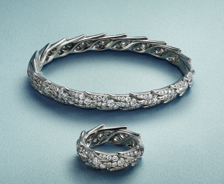 Tiffany & Arsham Studio Eroded Penny Vessel and HardWear necklace in 18k white gold with diamonds and tsavorites Jun 17, 2025