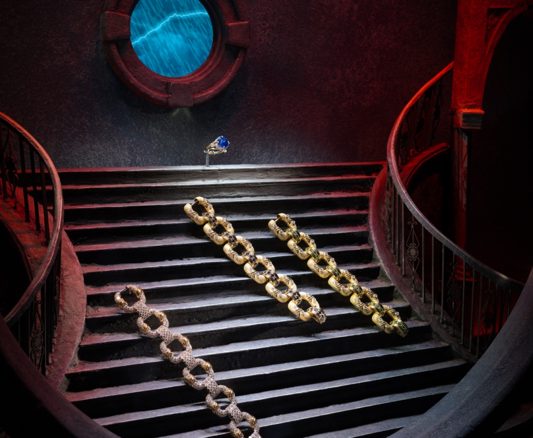 Specially designed digital screens and animation will merge with theatrical displays; all synchronized to the film’s monumental score, composed by Academy Award®-winner Alexandre Desplat. Dramatic lighting will electrify Fifth Avenue and reach its highest voltage after dark. Clients will be able to unlock exclusive behind-the-scenes content by scanning a QR code on the windows. Inside The Landmark, a curated presentation will showcase Tiffany & Co. jewels from The Tiffany Archives worn by Mia Goth in the film, offering a glimpse into the artistry that bridges Tiffany & Co. with del Toro’s celebrated vision.